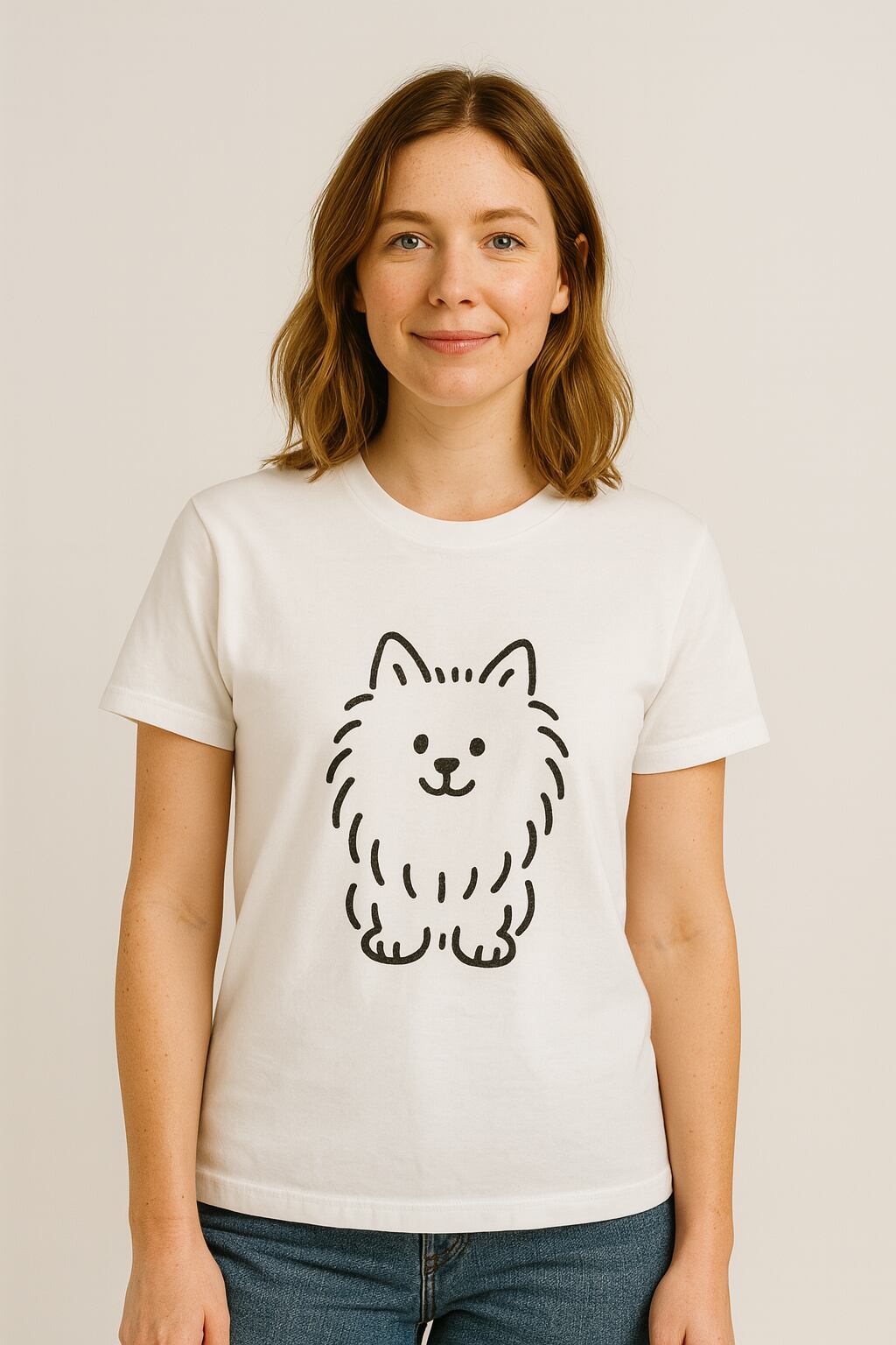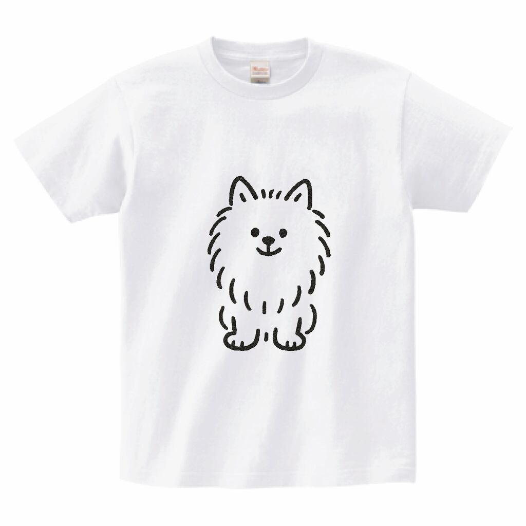 ポメラニアンのイラストが特徴的なホワイトTシャツ。
